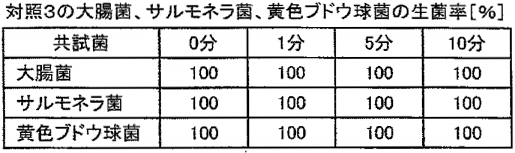 大腸菌、サルモネラ菌、黄色ブドウ球菌を各水溶液と共に24時間培養後、生菌率を確認